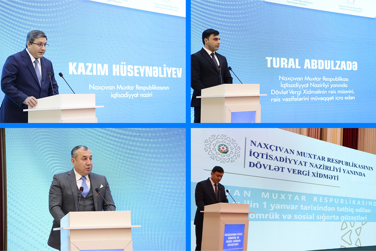 16 yanvar 2026-cı il tarixində Naxçıvan Sarayında Naxçıvan Muxtar Respublikasının İqtisadiyyat Nazirliyi və Naxçıvan Sahibkarlar Konfederasiyasının birgə təşkilatçılığı ilə “Naxçıvanda vergi, gömrük və sosial sığorta güzəştləri – biznes üçün yeni imkanlar” mövzusunda görüş keçirilib.